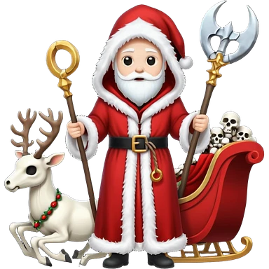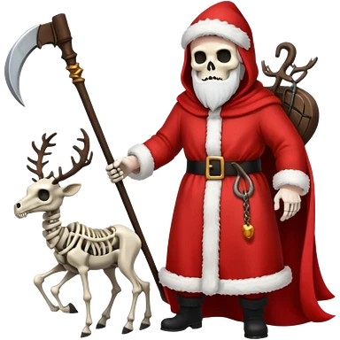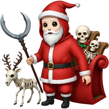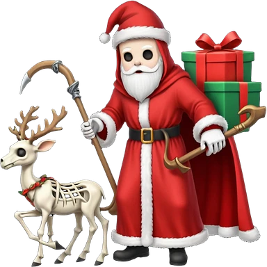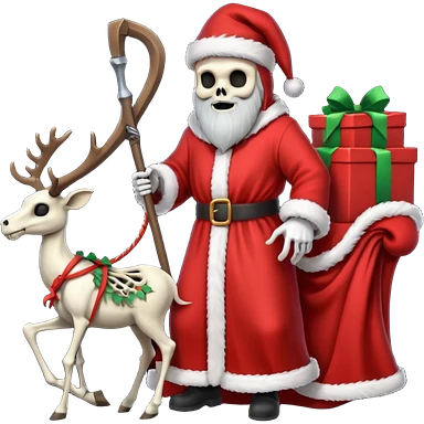 the Grim reaper dressed as Santa.... What gifts would be in his Sleigh.... What would his Sleigh likely look like.... Would the reindeer be skeletons, or ordinary reindeer emoji
