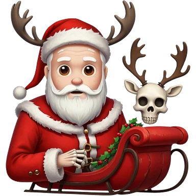 the Grim reaper dressed as Santa with a sleigh and reindeer as skeletons emoji