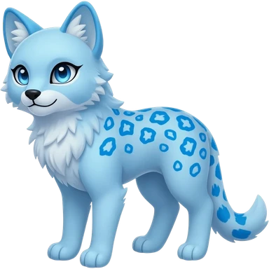 Blue cute adorable serval-snow-leopard-Lycanroc-wolf-fusion-hybrid, full body emoji