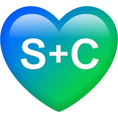 Blue and green heart with a S+C emoji