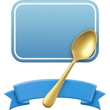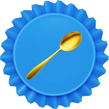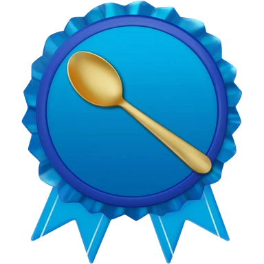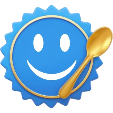 Blue verification badge with ribbons, gold spoon centered on badge emoji