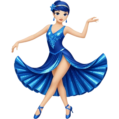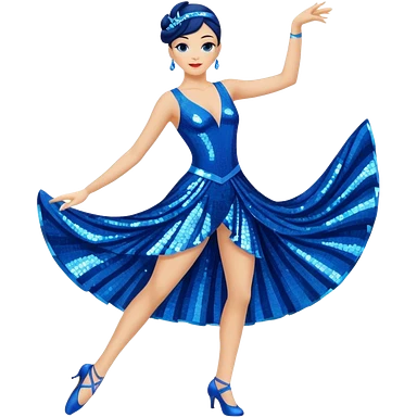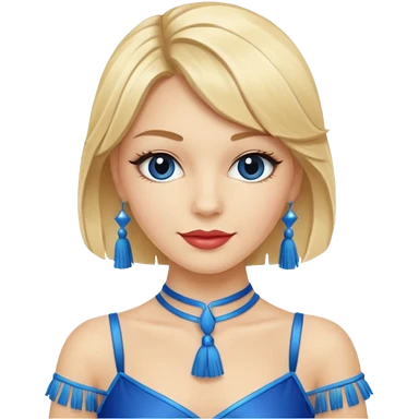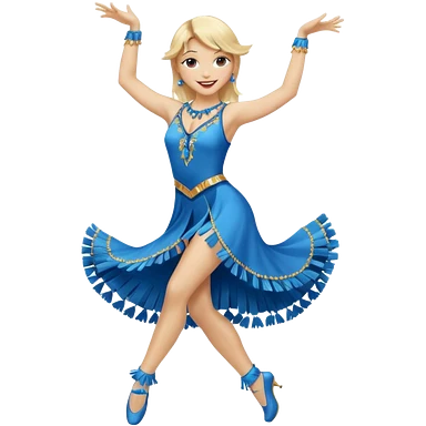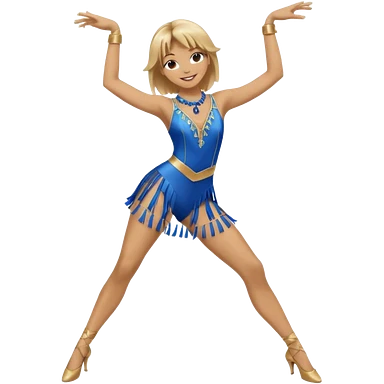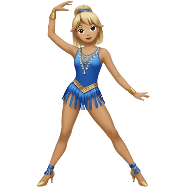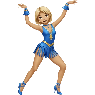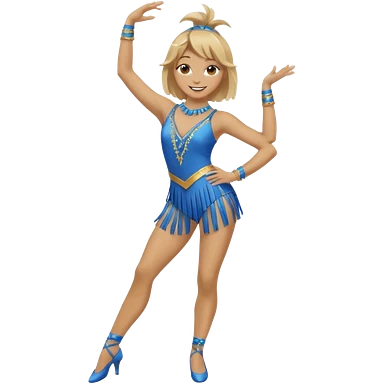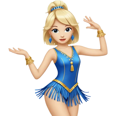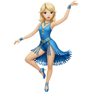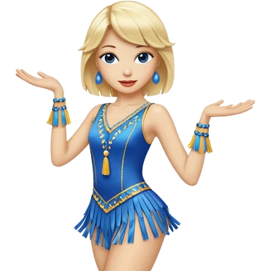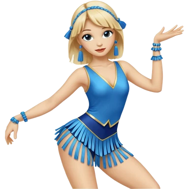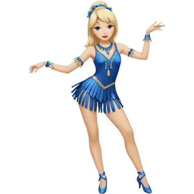 blue jazz style dance costume with tassels on dirty blonde full body emoji