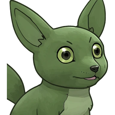 blue cat-like creature with a tail shaped like a music note and a mischievous grin emoji