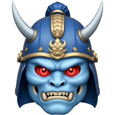 blue oni with samurai helmet face emoji