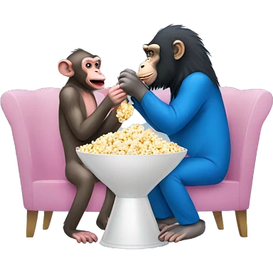 Pink baboon eating popcorn with a blue chimpanzee emoji