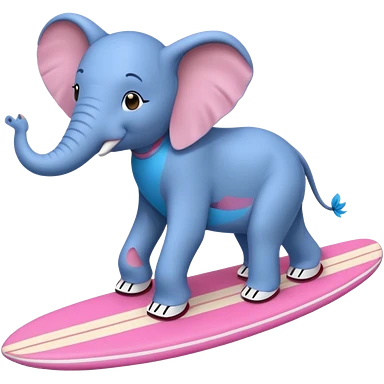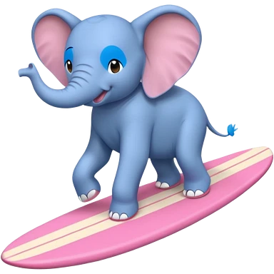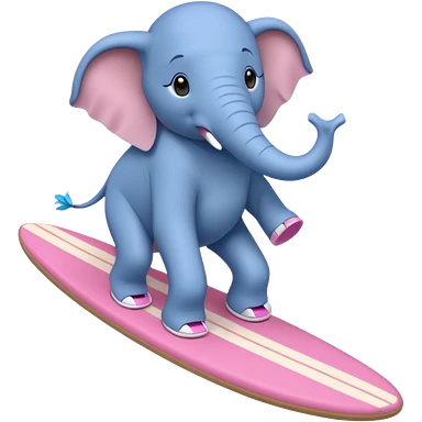 A blue elephant riding a pink surfboard wearing Nike sneakers emoji