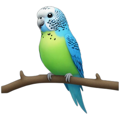 blue budgie parakeet with handsome Cuban brown haired man no beard emoji