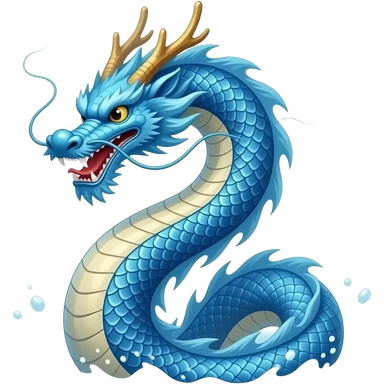 A blue Chinese serpentine dragon emerges from the sea and hovers above the surface. emoji