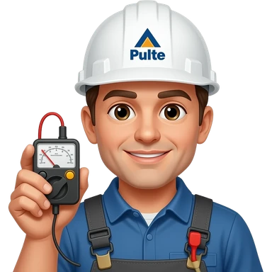 Electrician with meter and Pulte on his hard hat emoji