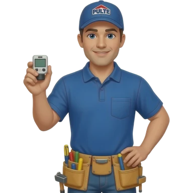 HVAC installer with thermostat with PULTE on his hat emoji