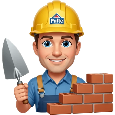 block mason with tools and Pulte on his hard hat emoji