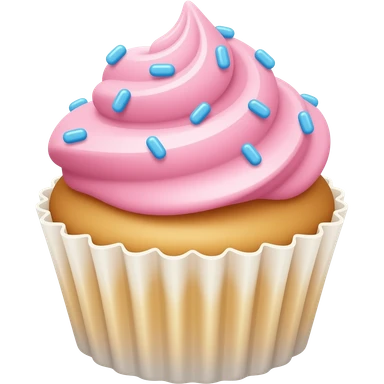 birthday cupcake with white cream, and colorful sprinkles on the top. IOS emoji style. Use pastel colors. pink, sky blue, white. emoji