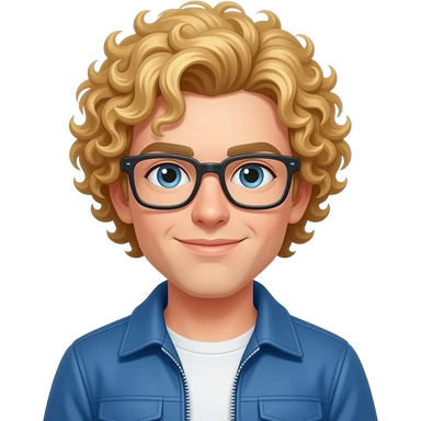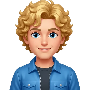 A character with curly blonde hair, wearing a blue jacket, no glasses. emoji