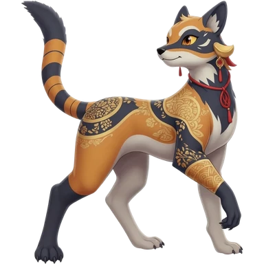 Hyper-realistic cute adorable beautiful elegant Colorful Skilled Adept Graceful Asian Painted Meloetta-Furret-Lycanroc-Zangoose-fusion-hybrid-creature (full body) emoji