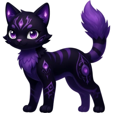 Kawaii dark black purplish blackish edgy fantasy ethereal feline-vernid-sergal-monster-furret-Lycanroc-umbreon-fursona animal creature full body with intricate markings emoji