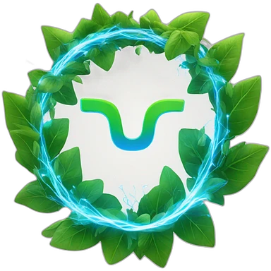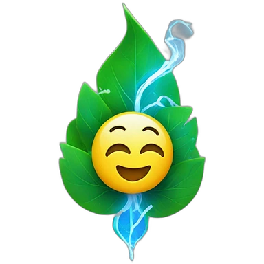 blue "e" from Engie logo with lightening emoji in green leaves emoji | AI Emoji Generator