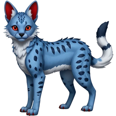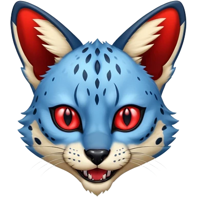Blue serval-Trico-Nargacuga-sergal-hybrid-animal-creature with red eyes emoji