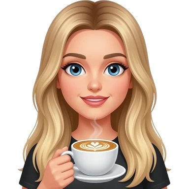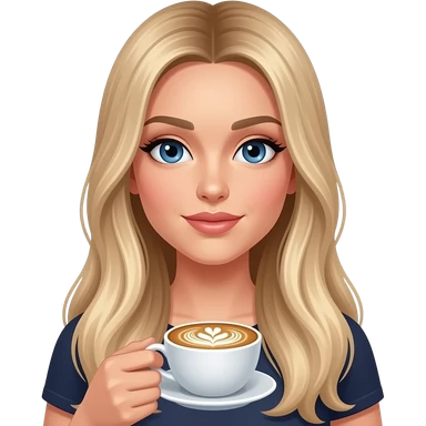 blue eye woman with extreme long straight blond hair with light ombré with late art coffee and MacBook gold in hands emoji