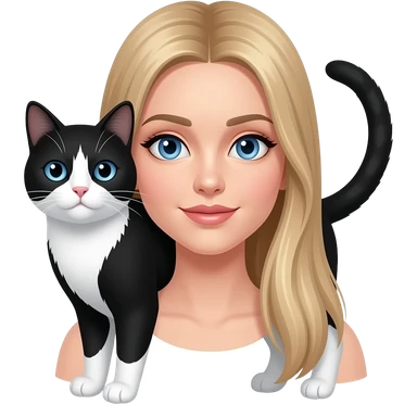 blue eye girl with long straight blond hair with black and white cat emoji | AI Emoji Generator