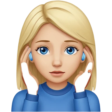 Blonde haired blue eyed woman scratching inner ear emoji