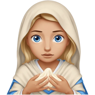 blue eyed desert child girl cowered with creme cloth emoji