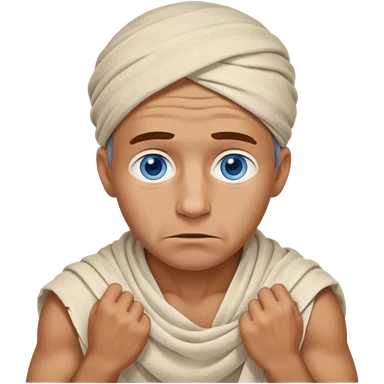 blue eyed desert man cowered with creme cloth emoji
