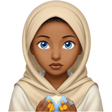 blue eyed desert black woman cowered with creme cloth emoji