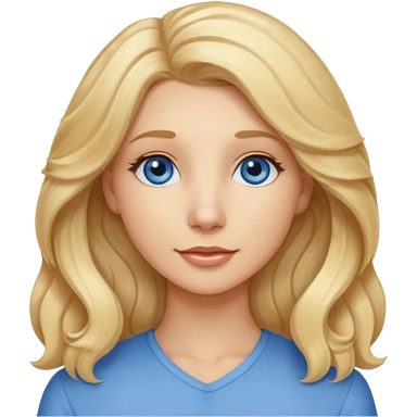 A beautiful blue eyed woman. Her hair is long, blonde, and wavy. She is wearing a blue dress. emoji