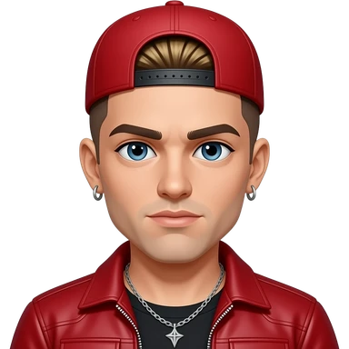 Eminem with blue eyes, blonde buzz cut hair, light blue metallic hip-hop outfit, necklace and earrings emoji