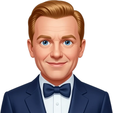 Mickey Rooney with blue eyes, strawberry blonde hair, black silk suit with bow tie emoji