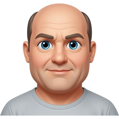 50 year old obese man, bald with hair on sides and near top of head, and blue eyes who looks very kind and friendly emoji