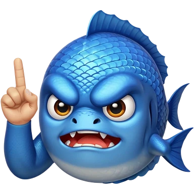 blue fish holding up a middlefinger towards the camera emoji | AI Emoji Generator