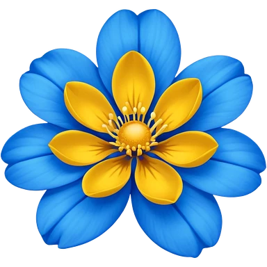 blue flower in a grassy area with a bright sun in the sky, fish eye lens effect emoji