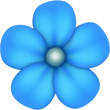 blue flower in a grassy area with a bright sun in the sky, fish eye lens effect emoji