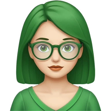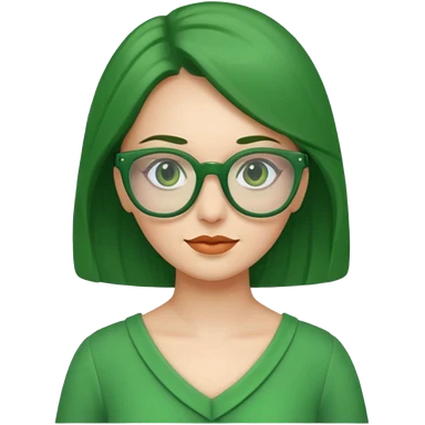 woman with glasses, blue eyes, curly burgundy hair, hair length to the soulders, dressed all black emoji