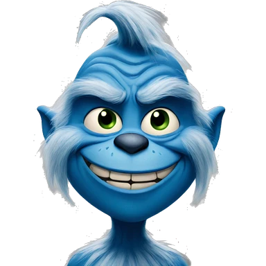 Blue Grinch smirking with eyes looking to the side emoji | AI Emoji Generator