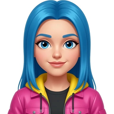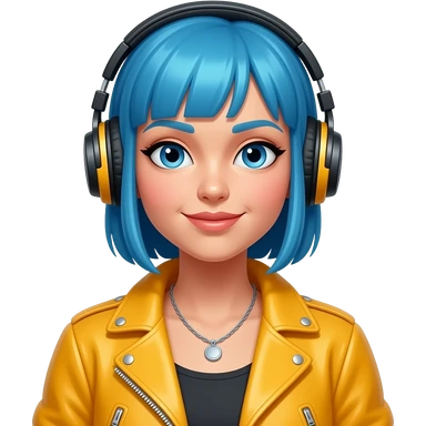 female blue hair Dj with bright jacket, head phoes emoji