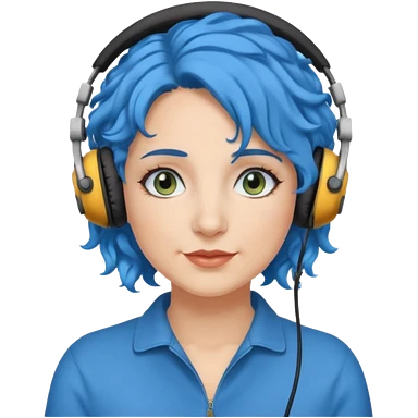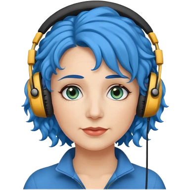 blue haired earringed heaphone wearing middle aged woman very very curly long haired and hazel small eyes emoji