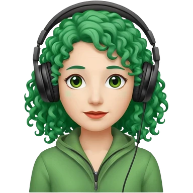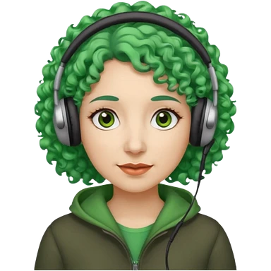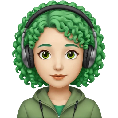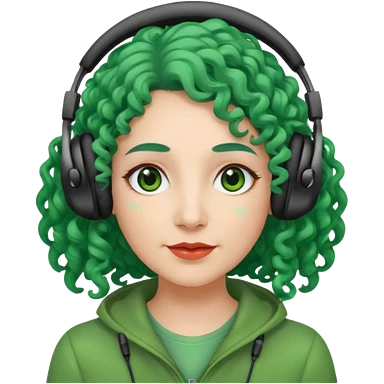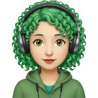 green haired earringed heaphone wearing middle aged woman very very curly long haired and hazel small eyes emoji