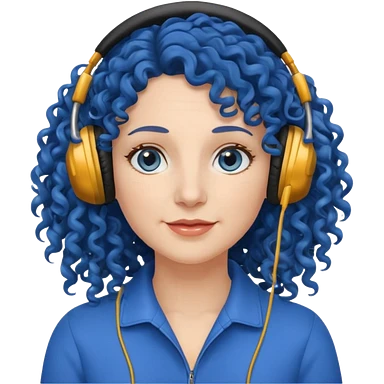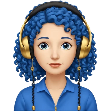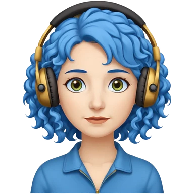blue haired earringed heaphone wearing middle aged woman very very curly long haired and hazel eyes emoji