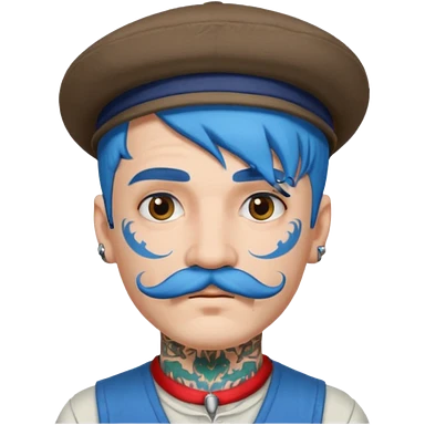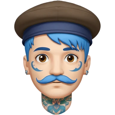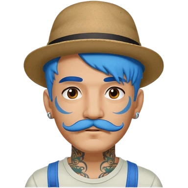 blue haired man and face tattoos and hat and mustache emoji