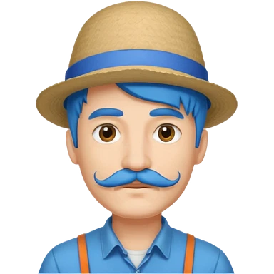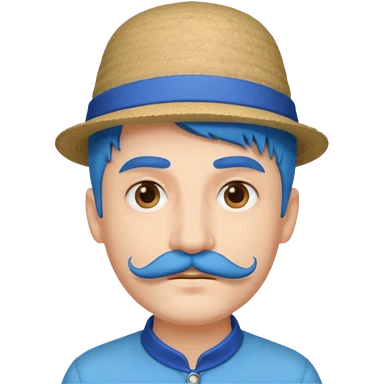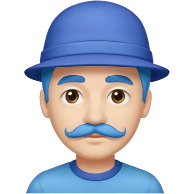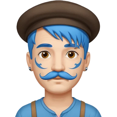 blue haired man and purple hat and mustache emoji | AI Emoji Generator