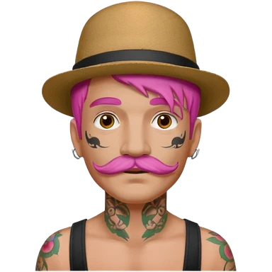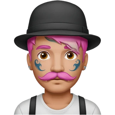 pink haired man and face tattoos and hat and mustache emoji