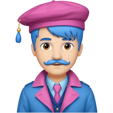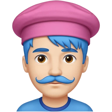 blue long haired man and small hat and pink mustache emoji