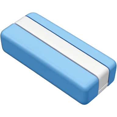 A single rubber white eraser with dark blue and light blue wrap emoji