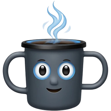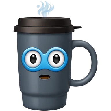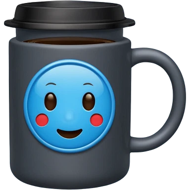 black hot coffee mug to go with black lid and a blue circle sticker emoji