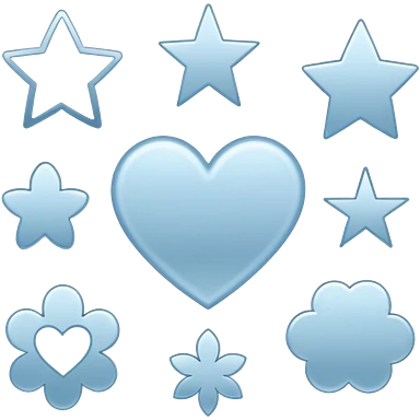Minimalist outline icons of various shapes like heart, circle, star, flower, cloud, and square — all in soft metallic silver and pastel blue strokes. Thin, clean vector-style outlines with no fill, placed on a plain white background. Aesthetic, modern, and elegant look. emoji