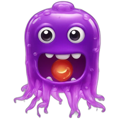 SQUIDGY jelly monster green with 3 eyes joined together, black pupils, white eyes together and open mouth with human teeth emoji