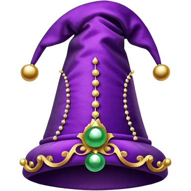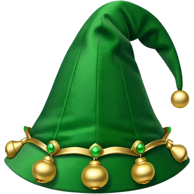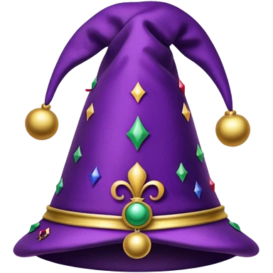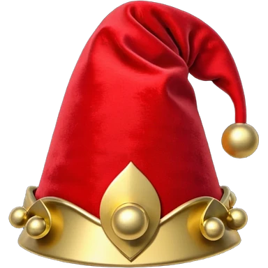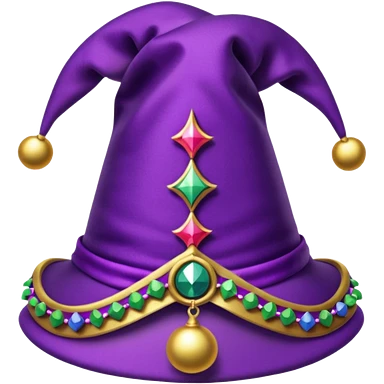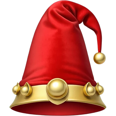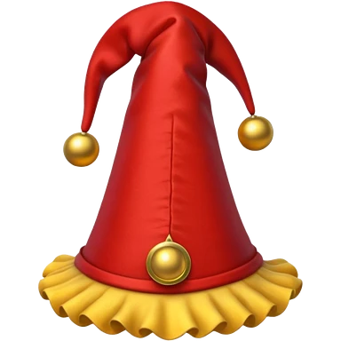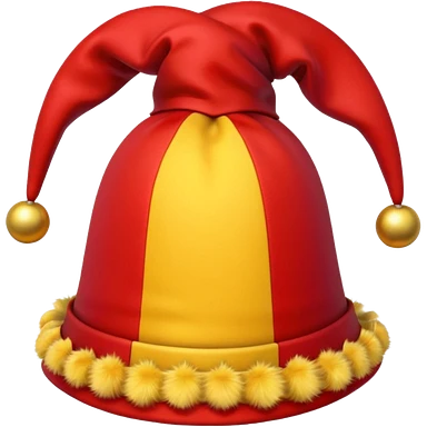 A 3D cartoon jester hat in red, blue, and green with bells, simple light background, Memoji-style rendering. emoji