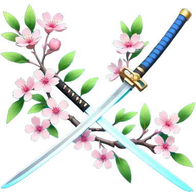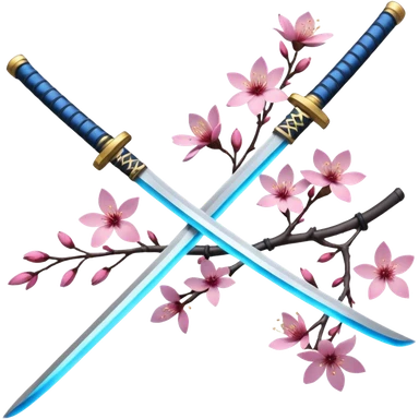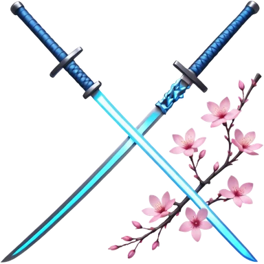 blue glowing katana multiple with accent words And Sakura flowers leaves and branches entangled with it emoji